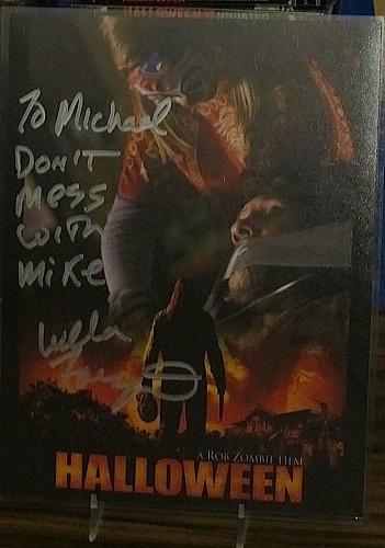 In person, William Forsythe has a tough, man’s man exterior. However, he’s an extremely nice person who is appreciative of his fans. I gave him my name so he could personalize the autograph. The message “Don’t mess with Mike” was his idea. I don’t know whether he always includes that when signing Halloween memorabilia or not, but I thought it was very cool of him to do so. Other Halloween related autographs will be posted here in the coming weeks.