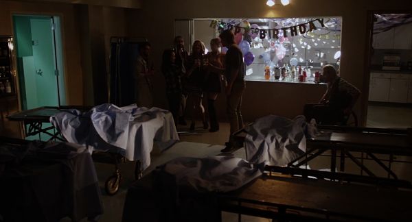 The party’s mastermind, Amy’s friend Tamara, doesn’t let that get in the way of having a good time. Tamara and her gang show up at the coroner’s building. They have a party in the morgue without Thee Undatakerz or Kool Keith. There’s drinking, kissing and sexual intercourse.