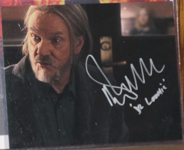 Next, McDowell signed the photo from Rob Zombie’s Halloween II. I liked the way that Dr. Loomis looked all bloody when Michael Myers started slashing him in the shed near the film’s conclusion. Upon seeing the photo, McDowell remarked that, “I appear to be in some distress [here].” McDowell signed both items, but then it occurred to him to simply put his character’s name beneath his signatures. Then, just like that, I was off to the side putting away the photographs in my bag. My entire meeting with Halloween‘s Dr. Loomis lasted less than a minute and a half.