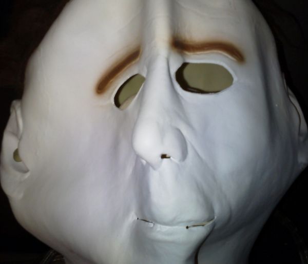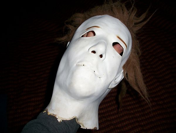 Michael Myers Mask “adult size.” That the mask is displayed thrown on the floor may help to begin to explain the overall condition of the mask.