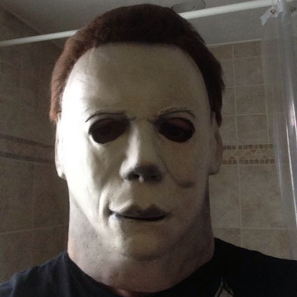 Leatherface7486 with Michael Myers mask and coveralls: