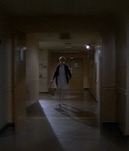 Michael Myers first employed the Knife In Back Lift in Halloween II (1981). While tending to Laurie at the very empty Haddonfield Memorial Hospital, a nurse appeared out of nowhere at the end of the hall. Behind the nurse, Myers appeared out of nowhere as well.