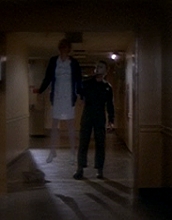 Thanks to Dr. Mixter’s exceptional, sober and professional treatment, Laurie saw the nurse in a blurry haze. Michael’s knifing and lifting of the nurse may have all been a product of Laurie’s drugged-up mind. However, the nurse’s shoes fell off (the prop department didn’t have her correct size) after she left the ground and that occurrence was not viewed from Laurie’s perspective. The stabbing and raising were real. Myers had done the unthinkable.