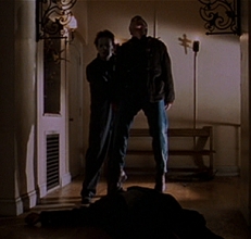 LL Cool J was shot in the head and knocked out. As Laurie and Will checked out the blood spilling from LL’s dome, Michael Myers appeared out of nowhere. Myers thrusts his knife into Will’s spine. Will twitched and convulsed, while the veins in his forehead were about to burst as Myers used his knife to lift him up with one arm.