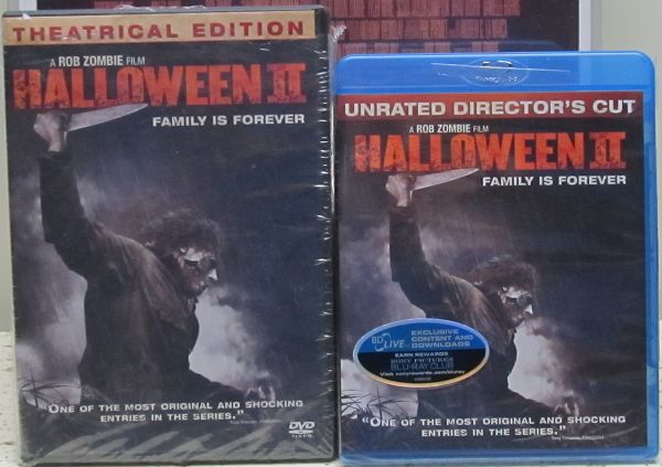 As with his first Halloween, Rob Zombie made available two versions of Halloween II to North American DVD and Blu-ray in January 2010: The Unrated Director’s Cut and the Theatrical Edition. Both variations have the same cover art (whereas each of the two variations of H1 had their own respective artwork). Both cuts of H2 were single disc releases (H1 was released as a double DVD).