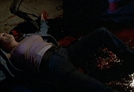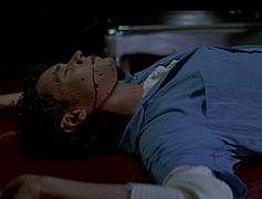 These next similarities are my favorite ones. A character steps and slips in a pool of someone else’s blood. In H2, Jimmy slips and suffers head trauma after attempting to run while standing in a nurse’s blood. In Resurrection, Sara falls on Nora’s blood in the garage. The nurse had been exsanguinated by Myers, while Nora lost a massive amount of blood after being sliced and hung.