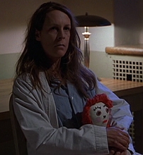 The two films feature Michael chasing Laurie through a hospital. Moreover, we get glimpses of both characters in long, desolate hallways and stairways. During a flashback/dream sequence in Halloween II, Laurie is seen holding a doll. In Resurrection, Laurie keeps a doll close to her while in the psychiatric hospital (she stuffs it with the medication she’s supposed to be taking).