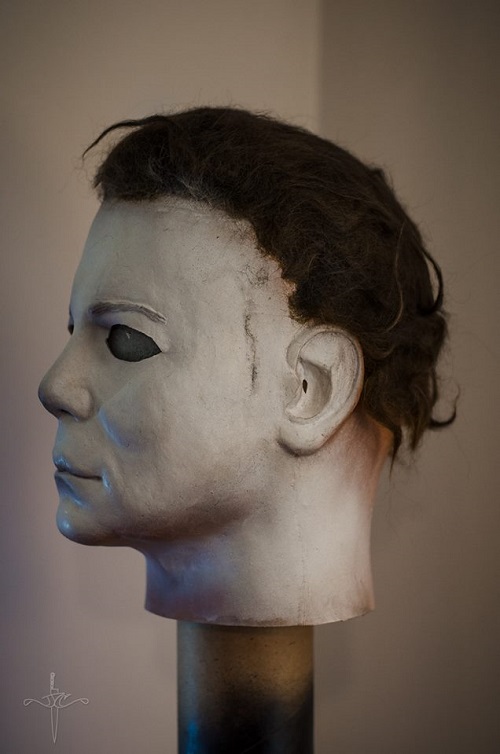 This year’s NUMBER SIX is the legendary KHDW (Ken Hertlein/Dick Warlock) mask. After Dick Warlock portrayed Michael Myers in 1981’s Halloween II, he kept the mask he wore in the movie along with the knife, boots and coveralls. Sometime in the year 2000 he commissioned the very talented artist Ken Hertlein to try and recreate this iconic mask. The look of the mask’s paint, texture of the hair, eye cuts, spatial relations of the features, mask size and all other little nuances of the hero mask were all taken into account. The result is one of the best replicas the hobby has seen to date. Below is weana0815 doing a full costume KHDW pic showing off this masks’ greatness nicely: