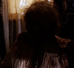 Upon seeing the severed head, I immediately thought of Michael Myers in Halloween 5. In this particular scene, Mrs. Spool’s head kind of looks like Big Neck Myers complete with nose appliance, strange hair and the rough features of the H5 mask. There is also at least one replica Myers mask that looks exactly like Mrs. Spool’s face.