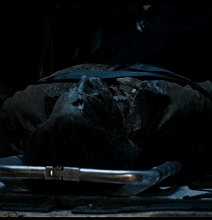 As if that weren’t enough damage for the mask (a gaping hole; herpes infection), it also suffered a gunshot at the film’s climax. Michael’s blood gushed out onto the mask. Then, Scout Taylor-Compton ended up stabbing Myers in the face (causing more damage to the mask).