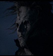 When Michael put his Mask on to off some hillbillies, the Mask looked to be in fair shape. All the hair was there; there were no bald spots. What’s more, the hair styled itself automatically once Myers put it on. Many hair-strands had become intertwined with each other. The scars and damage from the previous film were all there. Of note are some holes in the forehead area.