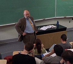 1.) Sara’s professor at Haddonfield University is named Dr. Mixter – like the drunk doctor who treated Laurie in the original Halloween II. Also, Dr. Mixter has unbelievable hearing. He heard Sara’s answer to his question even though she whispered it and was sitting near the back of the lecture hall.