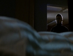 The theme of Michael Myers Look-alikes appears in both movies. Ben Tramer is the look-alike in Halloween II; Freddie Harris is a Myers impersonator in Resurrection. Also, Michael’s hatred of doors is quite evident in the two films. Myers walks through a glass door in Halloween II while pursuing Laurie. Myers also crashes through a door later on to get to Dr. Loomis and Laurie. In Resurrection, Myers rams his way through the door to Laurie’s room in the mental asylum.